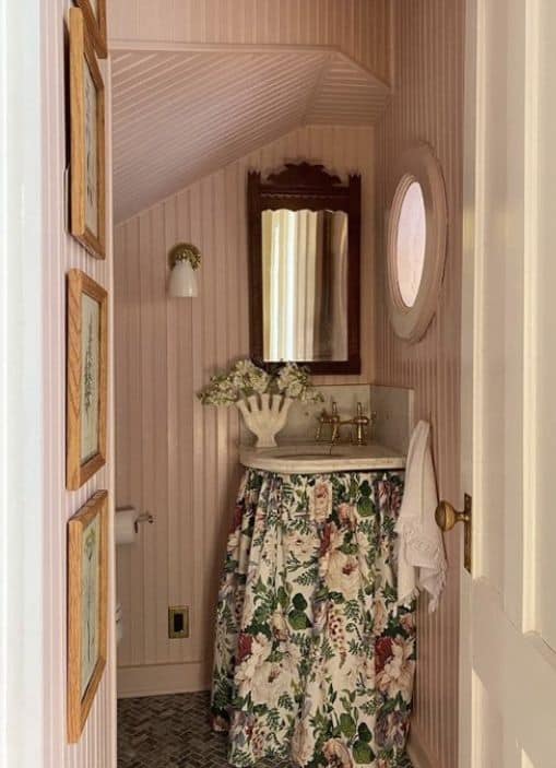 Sink skirts have been a hallmark of country cottage homes for hundreds of years. Recently, they have been having a moment in the design world, making appearances in even high-end homes to add a cozy, nostalgic feel.
