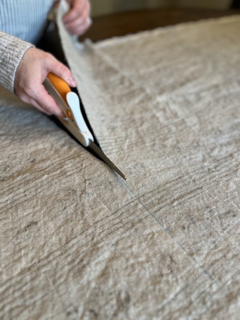 Cut fabric along the line. I ended up with three full-width sections of fabric, each 46″ long.