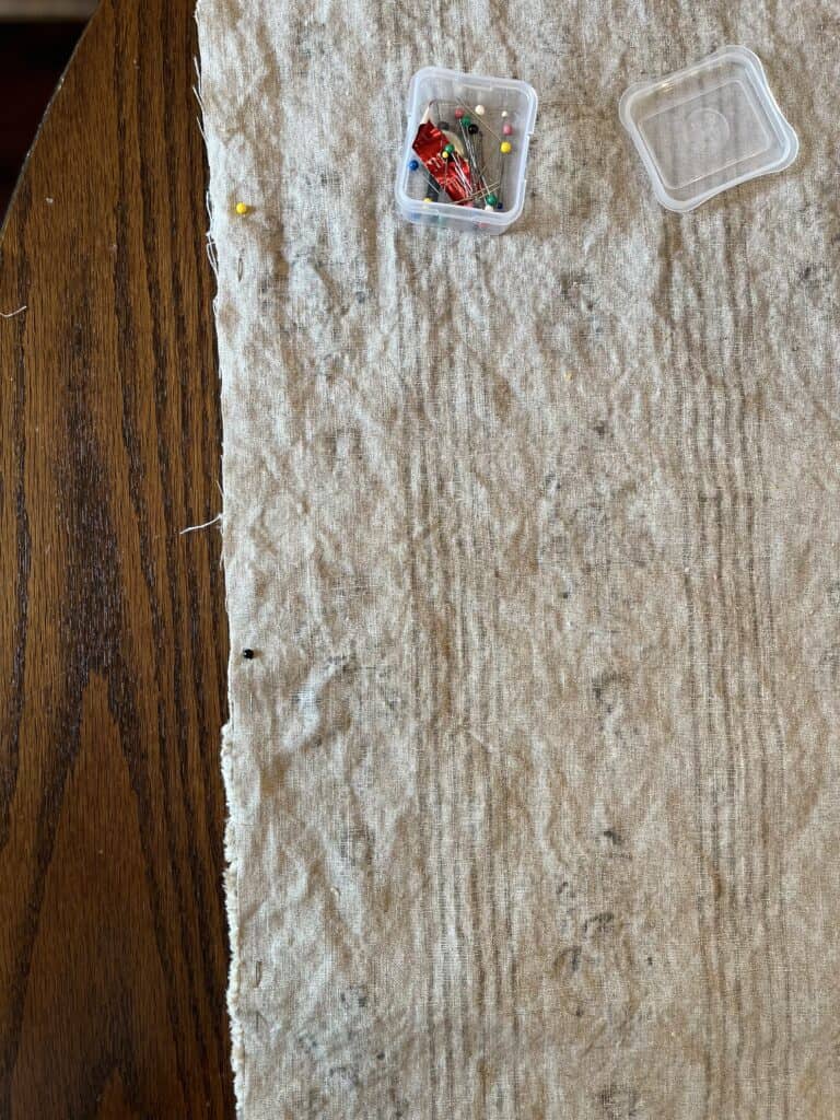 On one side, pin the fabric together lengthwise.