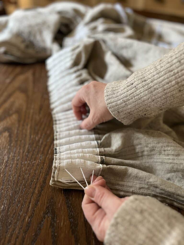 Gently pull on the strings of the pleat tape and start pushing fabric towards the center to make pleats.